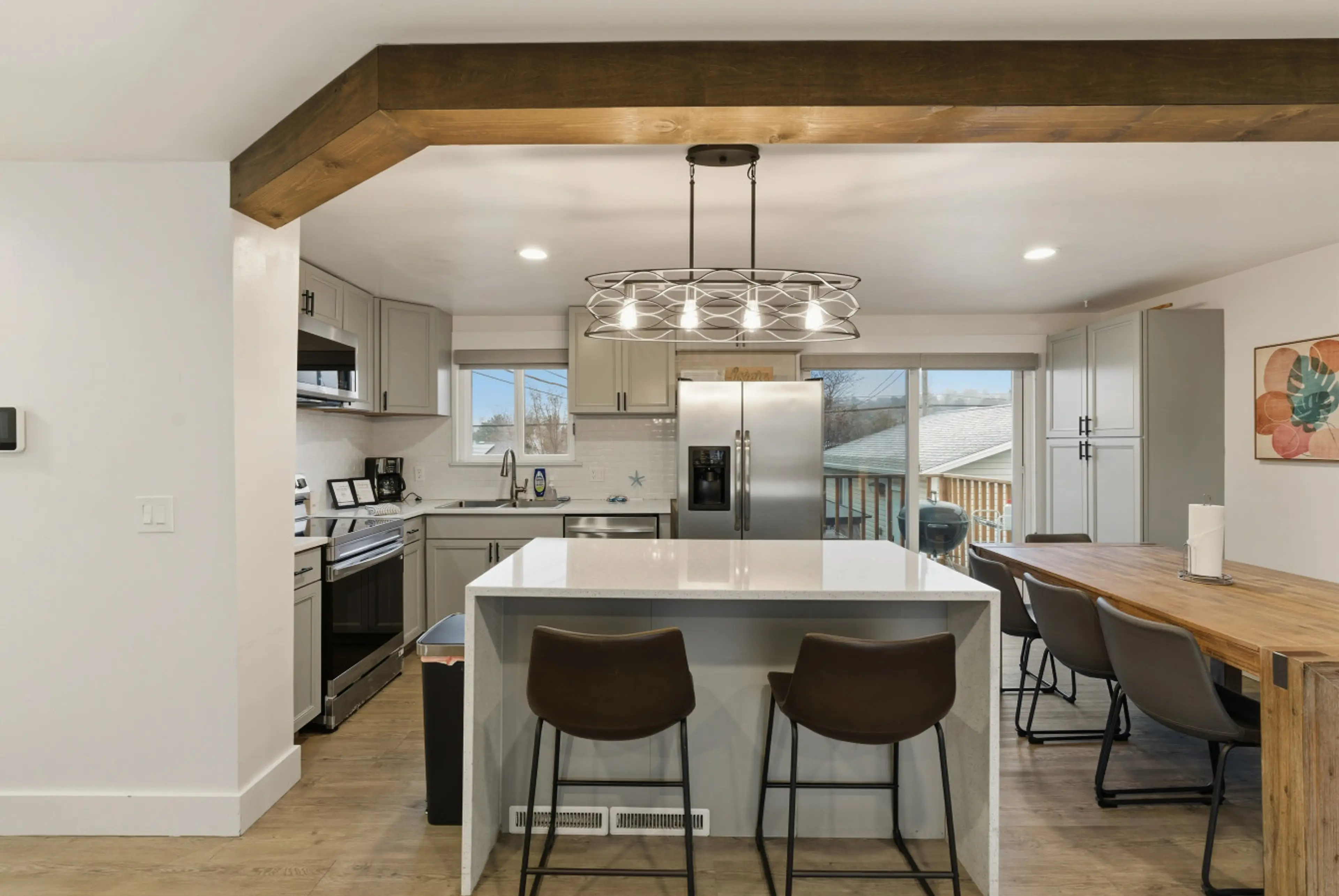 Summit Haven Retreat is a freshly remodeled 4-bed getaway in the heart of Sandy. Enjoy two spacious living rooms, a modern kitchen + kitchenette, a private hot tub, firepit, and peaceful outdoor seating. Close to ski resorts, mountain trails, shopping, and dining—this is the perfect home base for re...